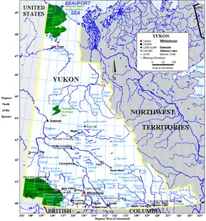La capital, Whitehorse, es también su ciudad más grande y poblada; la segunda en importancia es Dawson City (1800 hab.), que fue la primera en población hasta 1952.