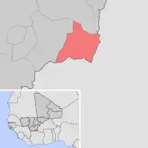Se encuentra ubicada al sur del país, junto a la frontera con Burkina Faso y Costa de Marfil y al sureste de la capital nacional, Bamako.