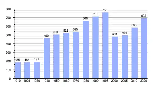En 2020 registró una población de 692 personas, lo que corresponde al 3.78 % de la población municipal.[8] De los cuales 341 son hombres y 351 son mujeres.[8]
