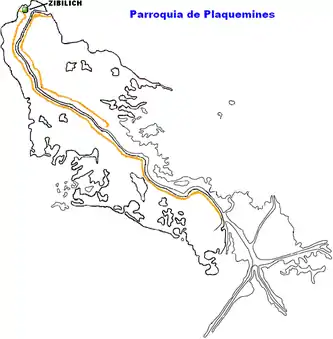 Localización de Zibilich en el mapa de la Parroquia de Plaquemines.