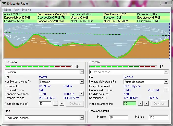 - Peor Fresnel = 3,1F1 = tercera zona despejada totalmente y 10% de la cuarta zona de Fresnel despejada.