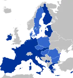 Un área monetaria óptima suele ser normalmente más grande que un solo país. Por ejemplo, parte de la argumentación detrás de la creación del euro es que los países europeos, individualmente considerados, no forman por sí solos un área monetaria óptima, pero que Europa en conjunto si forma un área monetaria óptima.[1] La creación del Euro suele citarse en este ámbito, porque provee del caso de estudio más reciente y de mayor envergadura de la creación de una zona monetaria óptima.