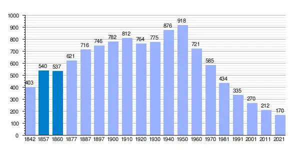 | Gráfica de evolución demográfica de Zorita de la Frontera[6] entre 1842 y 2021 |