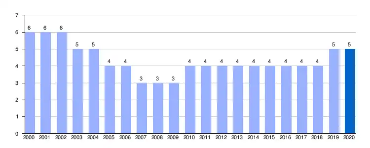 | Gráfica de evolución demográfica de Zorita de la Loma entre 2000 y 2020 |