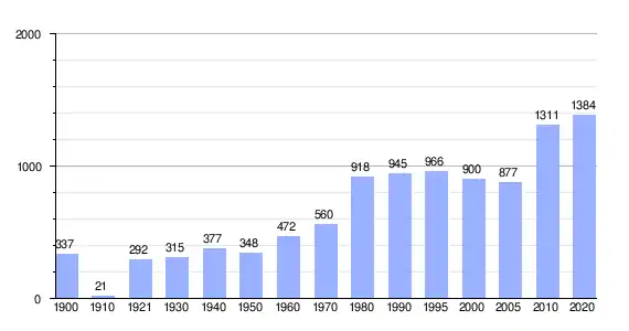 | Gráfica de evolución demográfica de Zozea entre 1900 y 2020 |