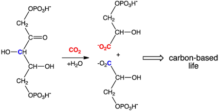 La carbonación describe también la incorporación de dióxido de carbono en compuestos químicos. Nuestra vida basada en carbono se origina de una reacción de carbonación que es a menudo catalizada por la enzima RuBisCO. Tan importante es este proceso de carbonación que una significante fracción de la masa de una hoja consiste en esta enzima carbonante.[2]