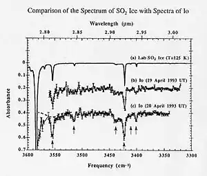La espectroscopía astronómica es un tipo particularmente significativo de detección espectral remota. En este caso, los objetos y muestras de interés están tan lejos de la tierra que la radiación electromagnética es el único medio disponible para medirlos. Los espectros astronómicos contienen información espectral de emisión y absorción. La espectroscopía de absorción ha sido particularmente importante para comprender las nubes interestelares y determinar que algunas de ellas contienen moléculas. La espectroscopía de absorción también se emplea en el estudio de planetas extrasolares. La detección de planetas extrasolares por el método de tránsito también mide su espectro de absorción y permite la determinación de la composición atmosférica del planeta,[7] temperatura, presión y altura de escala, y por lo tanto también permite la determinación de la masa del planeta.[8]