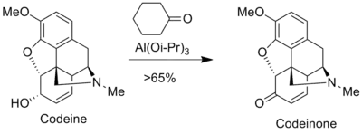 La codeinona puede ser obtenida a partir de la oxidación de Oppenauer de la codeína.