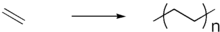 La polimerización de crecimiento en cadena (o polimerización por adición) implica la unión de monómeros insaturados, especialmente aquellos que contienen enlaces dobles carbono-carbono. El enlace-pi se pierde por la formación de un nuevo enlace sigma. La polimerización de crecimiento en cadena participa en la fabricación de polímeros tales como polietileno, polipropileno, cloruro de polivinilo (PVC), acrilato. En estos casos, los alquenos RCH=CH2 se convierten en alcanos de altos pesos moleculares (-RCHCH2-)n (R = H, CH3, Cl, CO2CH3).