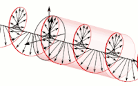La propagación de la onda electromagnética, en la medida en que se transmite, es polarización de la onda y se describe en términos de helicidad (ocurre como una hélice). La polarización de una onda electromagnética es la propiedad que describe la orientación, es decir, la variación en el tiempo, la dirección (vector) y la amplitud del vector del campo eléctrico. Para una representación, vea la imagen adyacente.
