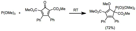 Las cetonas y los aldehídos simples experimentan fácilmente la adición de fosfitos en el carbono carbonílico. En una aplicación interesante, la adición a cetenas da productos idénticos a la reacción de Arbuzov de haluros de ácido.[11]