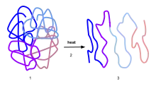 El conocimiento de la resistencia de una enzima a altas temperaturas es especialmente beneficioso en la purificación de proteínas. En el procedimiento de desnaturalización por calor, se puede someter una mezcla de proteínas a altas temperaturas, lo que dará como resultado la desnaturalización de las proteínas que no son termoestables y el aislamiento de la proteína que es termodinámicamente estable. Un ejemplo notable de esto se encuentra en la purificación de la fosfatasa alcalina del hipertermófilo Pyrococcus abyssi. Esta enzima es conocida por ser termoestable a temperaturas superiores a 95 °C y, por lo tanto, puede purificarse parcialmente mediante calentamiento cuando se expresa heterólogamente en E. coli .[12] El aumento de la temperatura provoca la precipitación de las proteínas de E. coli, mientras que la fosfatasa alcalina de P. abyssi permanece estable en solución.