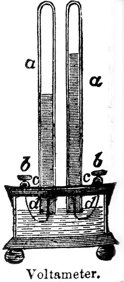 Michael Faraday usó, en algunos de sus experimentos, un aparato al que llamó "volta-electrómetro", de donde derivó a "voltámetro".[1]