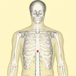 ![]() Ubicación de la apófisis xifoides (en rojo). | ||