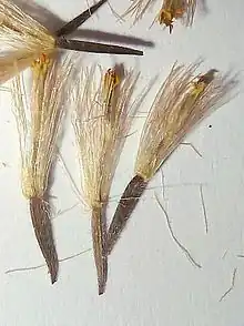 Un ejemplo de cipselas sueltas (aún con los flósculos) en Arnica sp. ex. gr. montana - .