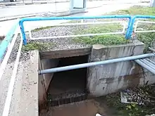 Interior de un drenaje para tormenta hecho de una voluminosa caja de hormigón armado en Ontario, Canadá.- Drenaje de tormenta en Obertraun, Austria.