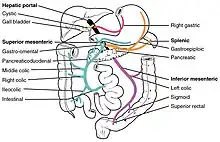 El metabolismo de primer paso puede producirse en el hígado (para el propranolol, la lidocaína, el clometiazol y la nitroglicerina) o en el intestino (para la bencilpenicilina y la insulina).[4] Los cuatro sistemas principales que afectan al efecto de primer paso de un fármaco son las enzimas de la luz gastrointestinal,[5] las enzimas de la pared gastrointestinal,[6][7][8] las enzimas bacterianas[5] y las enzimas hepáticas.[6][7][9]