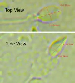 - En los cerdos, la eyaculación es de unos 100 a 600 ml, con una concentración de 300 000 a 1 000 000 de espermatozoides/mm³.[10] La longitud de los espermatozoides es de unos 90 μm.