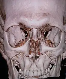 - ↑ Nahum, Alan M; Melvin, John (2002). «Skull and facial bone trauma». Accidental Injury: Biomechanics and Prevention (en inglés). Berlin: Springer Science & Business Media. pp. 254-258. ISBN 9780387988207. Consultado el 4 de diciembre de 2017.