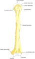 - Cuerpo del húmero: Se ubica entre las dos epífisis del hueso, presenta una cara anteromedial, una cara anterolateral y una cara posterior. La reunión de las caras anteromedial y anterolateral conforman un borde anterior, la reunión de las caras anteromedial y posterior conforman un borde medial y, la reunión de las caras anterolateral y posterior conforman un borde lateral.