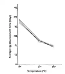 Tiempo de desarrollo del huevo por temperatura