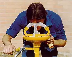 Una fuente lavaojos o ducha lavaojos es un dispositivo de laboratorio capaz de irrigar con abundante agua los dos ojos de una persona para conseguir una descontaminación rápida y eficaz de las salpicaduras que hubieran podido afectar los ojos.