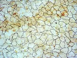 La matriz extracelular animal incluye la matriz intersticial y la membrana basal.[6] La matriz intersticial está presente entre varias células animales (es decir, en los espacios intercelulares). Los geles de polisacáridos y proteínas fibrosas llenan el espacio intersticial y actúan como un amortiguador de compresión contra la tensión ejercida sobre la MEC.[7] Las membranas basales son deposiciones de MEC en forma de láminas sobre las que descansan varias células epiteliales. Cada tipo de tejido conectivo en animales tiene un tipo de MEC: las fibras de colágeno y el mineral óseo comprenden la MEC del tejido óseo; las fibras reticulares y la sustancia fundamental comprenden el MEC del tejido conectivo laxo.