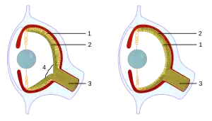 El punto ciego existe en los humanos y otros animales, pero no en todos. La evolución del ojo comenzó hace 540 millones de años. La aparición del primer ojo con una genuina formación de la imagen provocó una fuerte competición, que favoreció la evolución simultánea de diversos tipos de ojos. Los ojos de los calamares y sepias son un ejemplo de ojos similares a los humanos por convergencia evolutiva, pero que evitan la formación de un punto ciego.