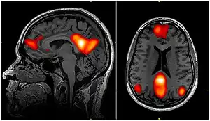 - ↑ Horn, Andreas; Ostwald, Dirk; Reisert, Marco; Blankenburg, Felix (2013). «The structural-functional connectome and the default mode network of the human brain». NeuroImage 102: 142-151. PMID 24099851. doi:10.1016/j.neuroimage.2013.09.069.