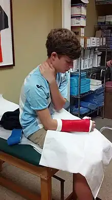 - ↑ Adkins, Lisa M (July–August 1997). «Cast changes: synthetic versus plaster». Pediatric Nursing 23 (4): 422, 425-7. PMID 9282058.