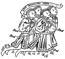Fig. 6.—Members of New College, Oxford, from Chandler MS. (15th century).