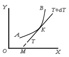 - K is tugged by two tensions, whose difference dT