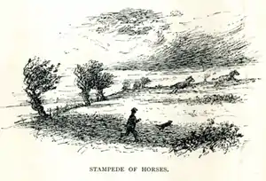 Compare a halt like this to one away down in Merrie England, on a bright, beautiful day in summer. We have put the nose-bags on near a wood, and close by the gates of an old-fashioned parsonage. Wells, my violinist and valet, has placed the stove beneath the caravan and put the kettle on. I am lying on the grass with a book, my head pillowed on Hurricane Bob, my Newfoundland.