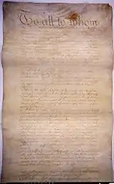 To all to whom these Presents shall come, we the undersigned Delegates of the States affixed to our Names send greeting. Whereas the Delegates of the United States of America in Congress assembled did on the fifteenth day of November in the Year of our Lord One Thousand Seven Hundred and Seventy Seven, and in the Second Year of the Independence of America agree to certain articles of Confederation and perpetual Union between the States of New Hampshire, Massachusetts bay, Rhode Island and Providence Plantations, Connecticut, New York, New Jersey, Pennsylvania, Delaware, Maryland, Virginia, North Carolina, South Carolina and Georgia in the Words following, viz. "Articles of Confederation and perpetual Union between the States of New Hampshire, Massachusetts bay, Rhode Island and Providence Plantations, Connecticut, New York, New Jersey, Pennsylvania, Delaware, Maryland, Virginia, North Carolina, South Carolina and Georgia.