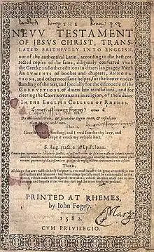 - The Holie Bible, first published edition, 1582-1610. (incomplete)
