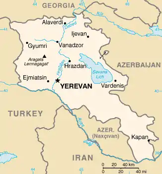 | Terrain: | Armenian Highland with mountains; little forest land; fast flowing rivers; good soil in Aras River valley | |
