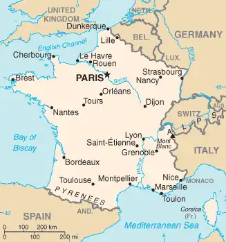 | Location: | Western Europe, bordering the Bay of Biscay and English Channel, between Belgium and Spain, southeast of the UK; bordering the Mediterranean Sea, between Italy and Spain |