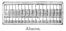 Abacus, ab′a-kus, n. a counting-frame or table: (archit.) a level tablet on the capital of a column, supporting the entablature:—pl. Ab′acī.—ns. Abacis′cus, Abac′ulus, dims. of Abacus; Ab′acist, one who counts with the abacus. [L.—Gr. abax, abakos, a board for reckoning on.]
