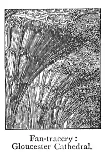 Fan, fan, n. an instrument for winnowing grain: a broad, flat instrument used by ladies to cool themselves: a wing: a small sail to keep a windmill to the wind: the agitation of the air caused by a fan.—v.t. to cool with a fan: to winnow: to ventilate: to remove by waving a fan:—pr.p. fan′ning; pa.p. fanned.—ns. Fan′-blast, in ironworks the blast produced by a fan, as distinguished from that produced by a blowing-engine; Fan′-crick′et, the mole-cricket, fen-cricket, or churr-worm.—adj. Fan′-nerved, in entomology, having a fan-like arrangement of the nervures or veins of the wings.—ns. Fan′light, a window resembling in form an open fan; Fan′ner, a machine with revolving fans, used for winnowing grain, &c.; Fan′-palm, a species of palm 60 or 70 feet high, with fan-shaped leaves, used for umbrellas, tents, &c.; Fan′-tail, an artificial fan-tailed variety of the domestic pigeon; Fan′-trāc′ery (archit.), tracery rising from a capital or a corbel, and diverging like the folds of a fan over the surface of a vault; Fan′-wheel, a wheel with fans on its rim for producing a current of air. [A.S. fann, from L. vannus, a fan; cf. Fr. van.]