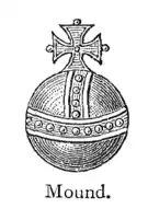 Mound, mownd, n. (her.) the representation of a globe encircled with bands, and surmounted by a cross.—Also Monde. [Fr. monde—L. mundus, the world.]