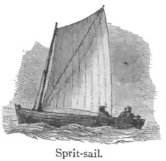 Sprit, sprit, n. (naut.) a spar set diagonally to extend a fore-and-aft sail. [A.S. spreót, a pole; Dut. and Ger. spriet, a bowsprit; conn. with sprout.]