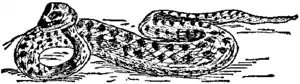 ADDER, etymologically nadder, the n having been attracted to the article and lost, the common English name of the viper (Vipera berus) . Its color is yellowish brown or olive, with a double series of black spots along the back. The sides are a little paler and are also spotted with black. The adder has a broad, triangular head and a short tail. It rarely exceeds two feet in length. The adder is the only poisonous reptile in Great Britain, and is found in most of the countries of Europe. In the United States the name is popularly applied to several harmless snakes, but the true adder does not occur.