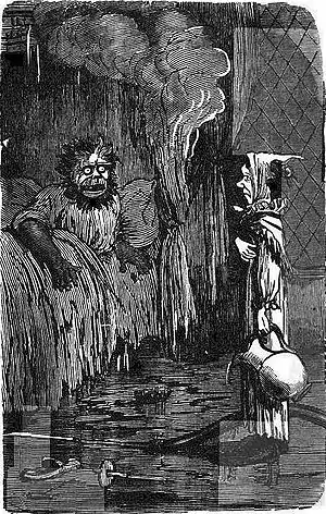 “Fearful! Call you this fearful, ha! ha! ha! Look! you wretched little atom, look!” and he dashed forward, and, leaping out of the window, stood like a statue in the pelting storm, with folded arms. He did not stay long, but in a few minutes returned by way of the hall chimney. I saw from the way that he wiped his feet on my dress that he had again forgotten my presence.