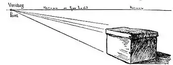 The lines of the long esplanade by the sea, of the long buildings, of the long passage or tunnel, all recede, and if continued in our imagination meet at the level of the eye, which is the horizon. For the vanishing point is that point on the surface of the picture where retiring lines if continued would meet.