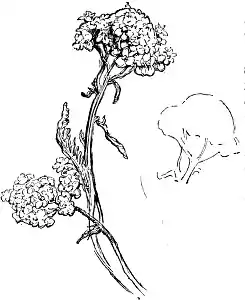 In a meadow-land of gold and silver, where cows are "forty feeding like one," choose a spray of buttercups, a single fine marguerite; take one cow under your observation; make a sketch of a portion of a tree, a gnarled branch, or some twisted roots with an over-curling plume of a fern. Sketch the stile, or the fragment of a paling round which a spray of ivy is climbing. Should you wish to sketch a cottage, be careful not to sit too near. If you do, your perspective will be very violent
