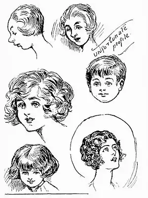 The silhouette filled and the outline firm and clear, you will note any projection of hair, frills, collar, lace, and ribbons. Draw these with a delicately fine line.