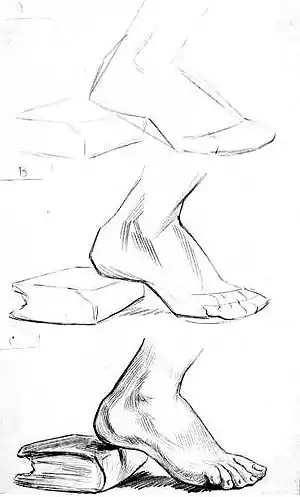 If centuries of cramping leather, of high heels and pointed toes, had not spoilt the shape of modern feet, we should be more interested in drawing the 'human foot divine.'