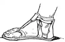 The sandal worn by the Romans, with its half-covering of the toes, and its straps and ribbons across the instep, and its thick sole—and one can roughly contrive a sandal with