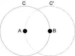 9. It may perhaps be well just to sketch here the mode of action of the medium in producing gravity, the manner in which the intensity is made to vary as the square of the distance, &c. Let A (in the annexed diagram) represent a molecule or mass; let C represent the bounding surface of an imaginary hollow sphere described about A. Then, since the particles of the medium are moving uniformly in all directions, a number of them will be passing in all directions through the imaginary spherical surface C. Only those particles which are passing (sensibly) along the radii of the spherical surface will strike A; and therefore we need only regard those special particles which radiate towards A. The molecule A being therefore struck equally on all sides, will accordingly remain at rest. But if now we suppose a second molecule to be placed at B, then out of the whole number of particles which are directed towards A, the molecule B will intercept a number which is proportional to the area which B cuts off from the whole spherical area C. The molecule A will therefore now, owing to the sheltering power of B, be struck with a fewer number of particles in the direction B A. The balance of the pressure being thus upset, A will be propelled towards B. The same holds true of B relatively to A (on drawing the imaginary spherical surface C'). The two molecules A and B are therefore propelled towards each other mutually. It now remains to illustrate how the impulsive action varies as the square of the distance. It will be at once evident that since the area of a spherical surface is as the square of the radius, therefore, if B [369] were removed to a double distance, the imaginary spherical surface described through B with A as a centre, would have four times the area; but the area of the molecule B remaining constant, B would therefore only shelter A one fourth the amount it did before; and accordingly A would be impelled towards B with one fourth the force, — the same being true of B relatively to A.