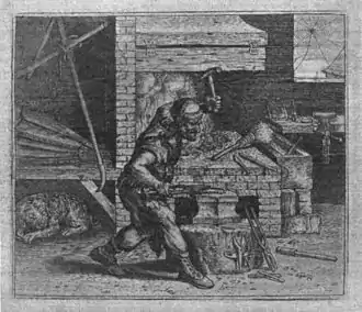 In the Emblems of Jacob Cats (Alle de Wercken, Amsterdam, 1665, p. 65) is given an engraved plate of a smith's forge, which is also copied—omitting the smith—from Kiliani's Viridarium.